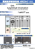 当社で取り扱う、高純度界面活性剤『メタリファイ 1003』について ご紹介いたします。 ppbレベルに金属管理された界面活性剤で、金属含有量は1ppb以下(各元素)。 洗浄性評価においては、界面活性剤の配合により洗浄効果を確認しています。 ご用命の際は、当社までお気軽にお問い合わせください。 【特長】 ■ppbレベルに金属管理された界面活性剤 ■良好な界面特性 ■洗浄性評価において、界面活性剤の配合により洗浄効果を確認 ※詳しくはPDFをダウンロードしていただくか、お気軽にお問い合わせください。