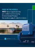 WEGは、EPD Internationalに承認された事前検証システムにのっとった モーターの環境製品宣言(EPD)を発行できる企業となりました。 EPDとは、製品のライフサイクル全体にわたる環境性能を、標準規格で 記載する図書です。これにより、製品の透明性·信頼性·信憑性が高まり、 お客様は検証済みデータに基づいて製品を比較し、より適切な選択を 行うことが可能になります。 この革新的な取り組みは、WEGが掲げる「より効率的で持続可能な世界の ための技術とソリューションを開発する」という使命を体現するものです。 そして、産業界全体が持続可能な社会への道を前進させるための強力な 推進力となっています。